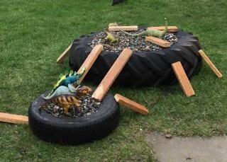 Home Learning » Classes » Nursery Nursery Nursery Dinosaur World! Thank you to Travis Perkins for donating lots of gravel to fill our tyres! Healthy